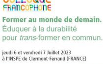 Appel à communication pour le colloque international "Former au monde de demain, éduquer à la durabilité pour trans-former en commun. Jeudi 6 et vendredi 7 juillet 2023 à l’INSPE de Clermont Ferrand.