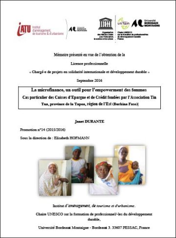Mémoire de Janet DURANTE. Cas particulier des Caisses d’Epargne et de Crédit fondées par l’Association Tin Tua, province de la Tapoa, région de l’Est (Burkina Faso). Septembre 2016.