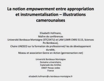 Pour comprendre les controverses et les débats que suscite l’intégration de la notion d’empowerment dans les discours dominants sur le développement, il convient tout d’abord de retourner aux origines du concept avant de comparer la manière dont les acteurs publics et de la société civile de notre terrain d’étude, le Cameroun, se positionnent aujourd’hui par rapport à cette notion.