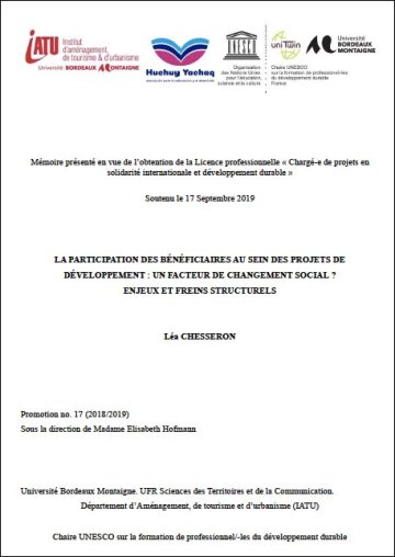 La participation recouvre un large spectre de mesures, de décisions et d’actions. Pour le cas de cette étude, nous avons fait le choix de nous concentrer sur les projets de développement participatifs, et de nous interroger quant au(x) rôle(s) réel(s) incarné(s) par les bénéficiaires.
