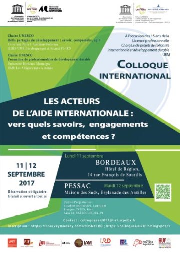 Moment privilégié de croisement des résultats de travaux de recherches et recherches-action, il a accordé une place importante aux acteurs de la coopération et de la solidarité internationales qui seront partie prenante des échanges sur ces questionnements scientifiques. Une attention particulière sera portée sur le effets induits des évolutions de la pratique professionnelle sur la formation et les modalités d’acquisition des compétences des acteurs de l’aide.